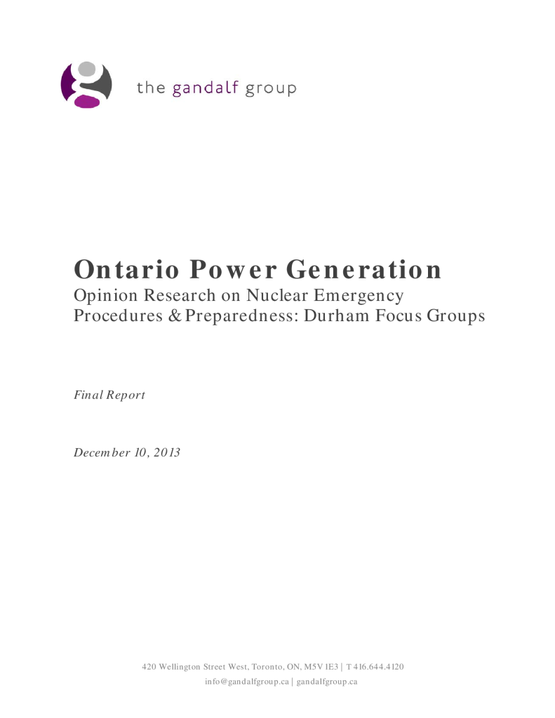 Ontario Power Generation – Opinion Research on Nuclear Emergency Procedures & Preparedness: Durham Focus Groups