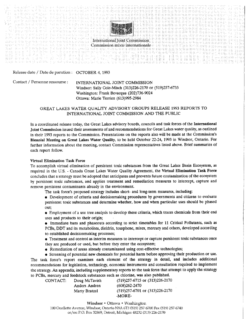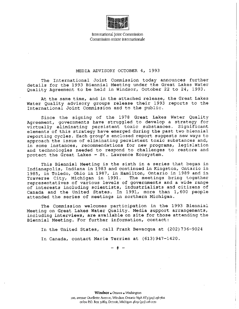 Organization of International Joint Commission’s annual general meeting