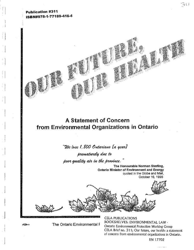 Our future, our health: A statement of concern from environmental organizations in Ontario