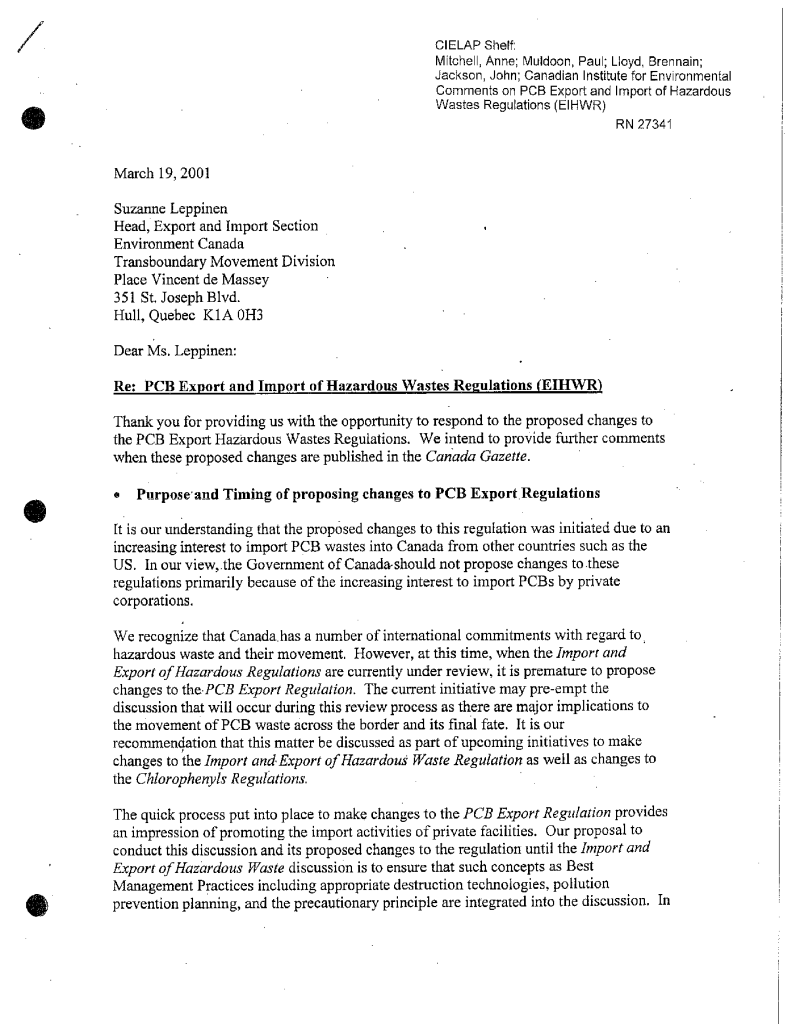 PCB Export and import of hazardous wastes regulations (EIHWR)