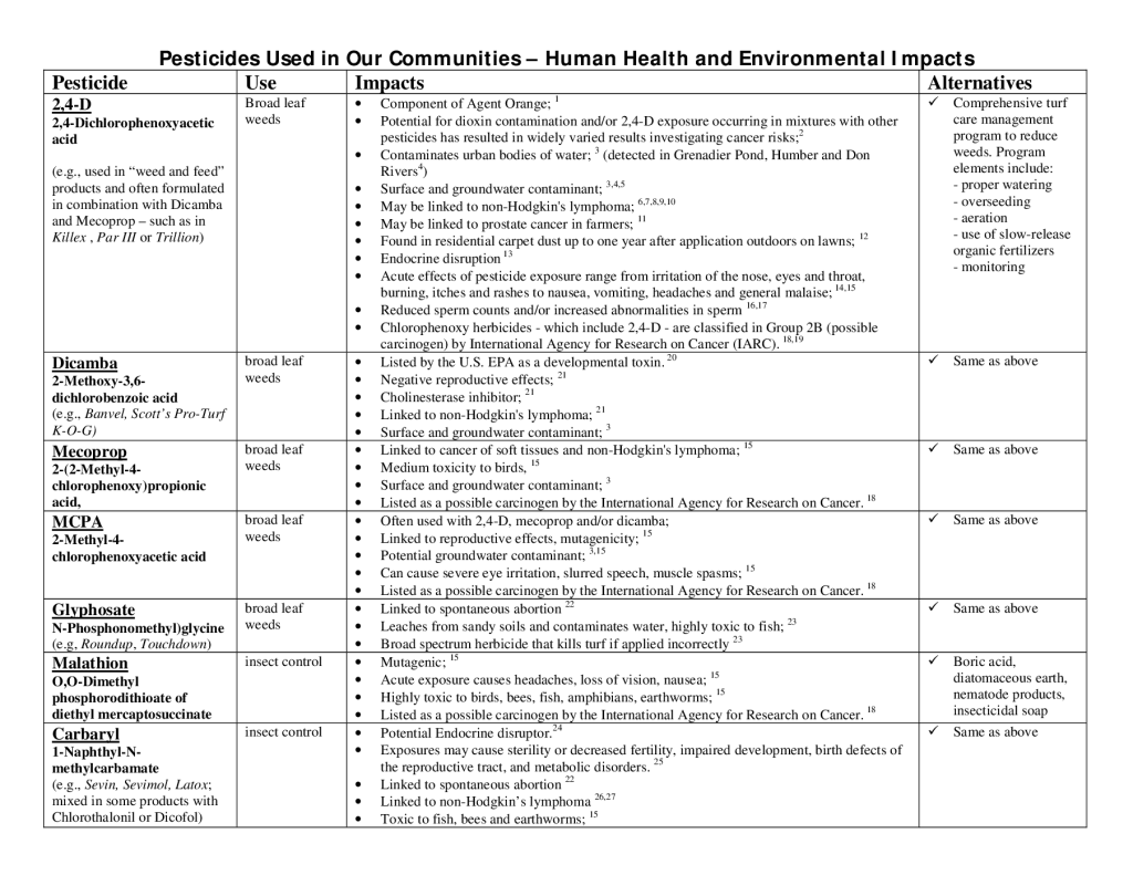 Pesticides used in our communities — human health and environmental impacts