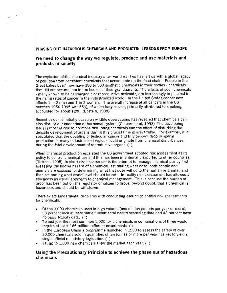 Phasing out hazardous chemicals and products : lessons from Europe