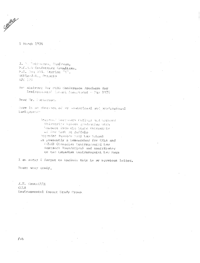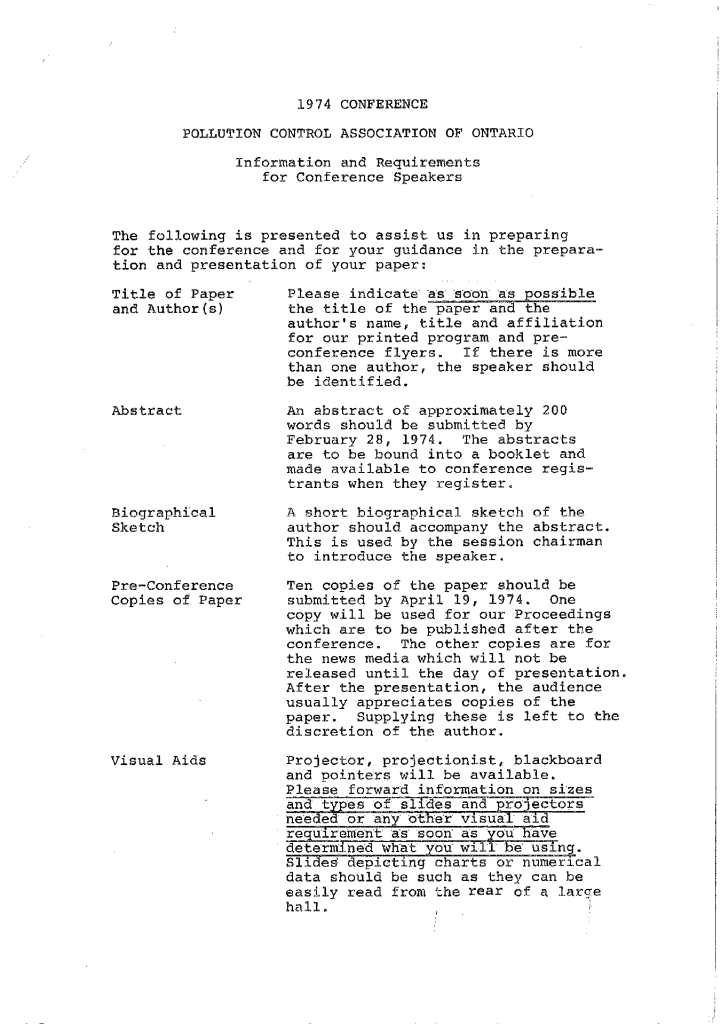 Pollution control association of Ontario annual conference correspondence