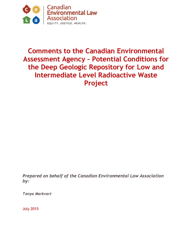 Fonds 1.0 - Canadian Environmental Law Association