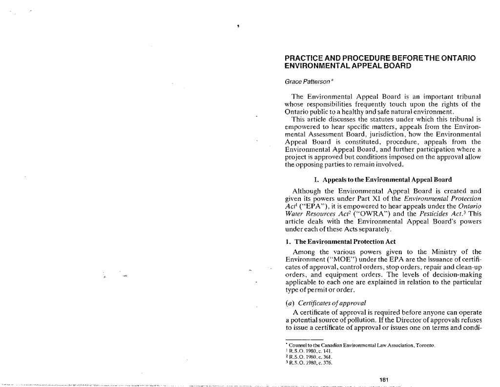 Practice and procedure before the Environmental Appeal Board