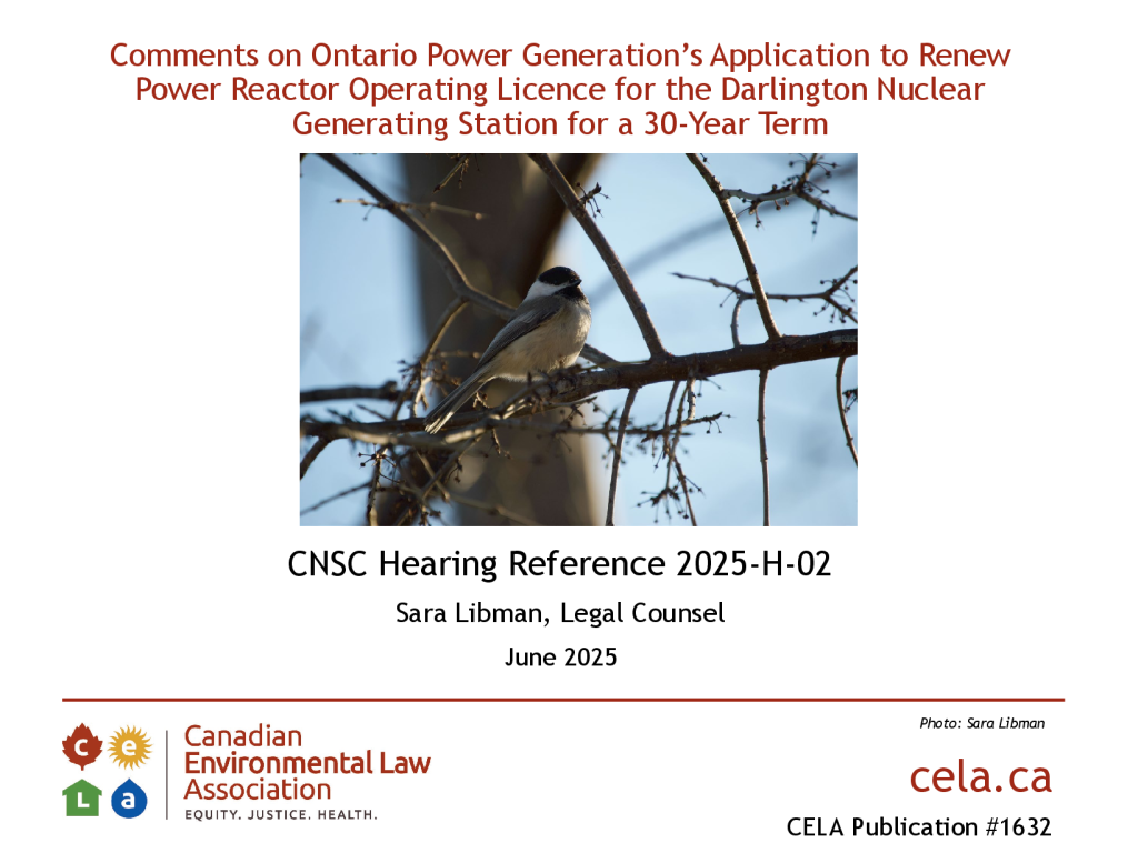 Presentation: Comments on Ontario Power Generation’s Application to Renew Power Reactor Operating Licence for the Darlington Nuclear Generating Station for a 30-Year Term