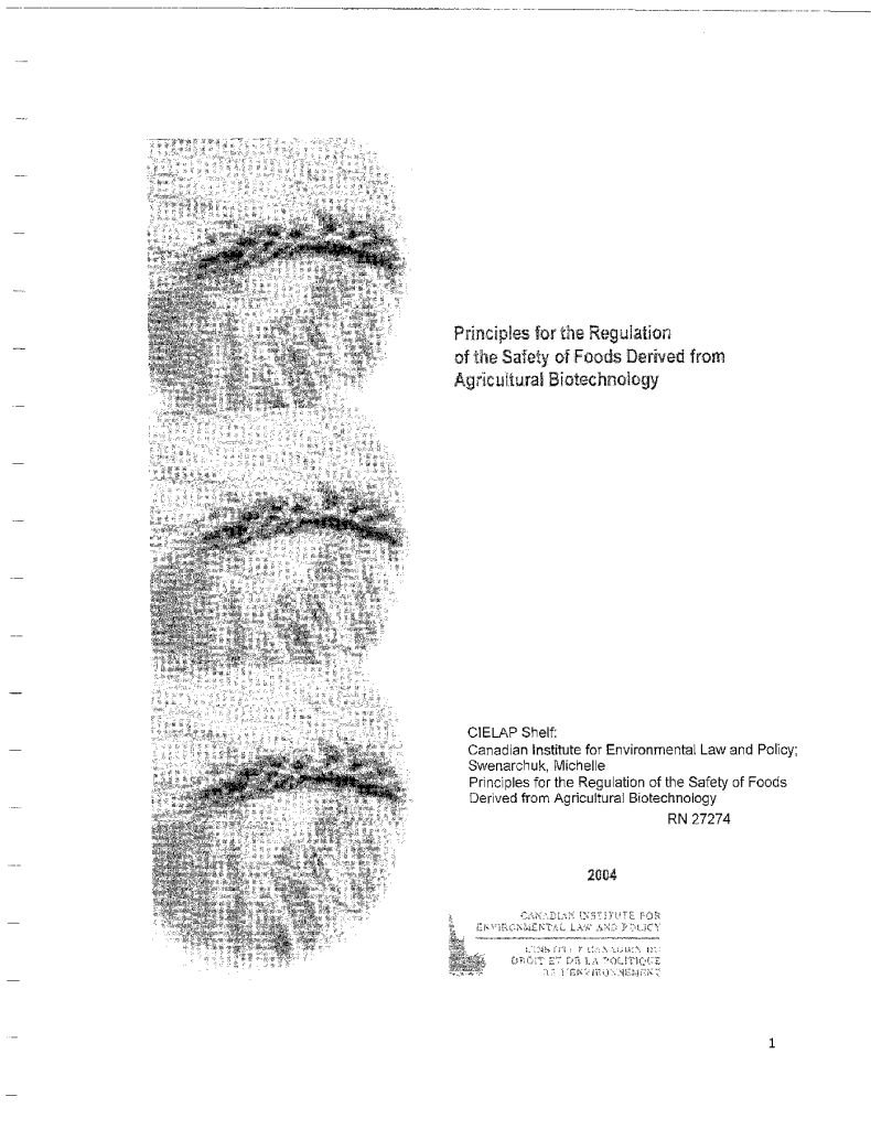 Principles for the regulation of the safety of foods derived from agricultural biotechnology
