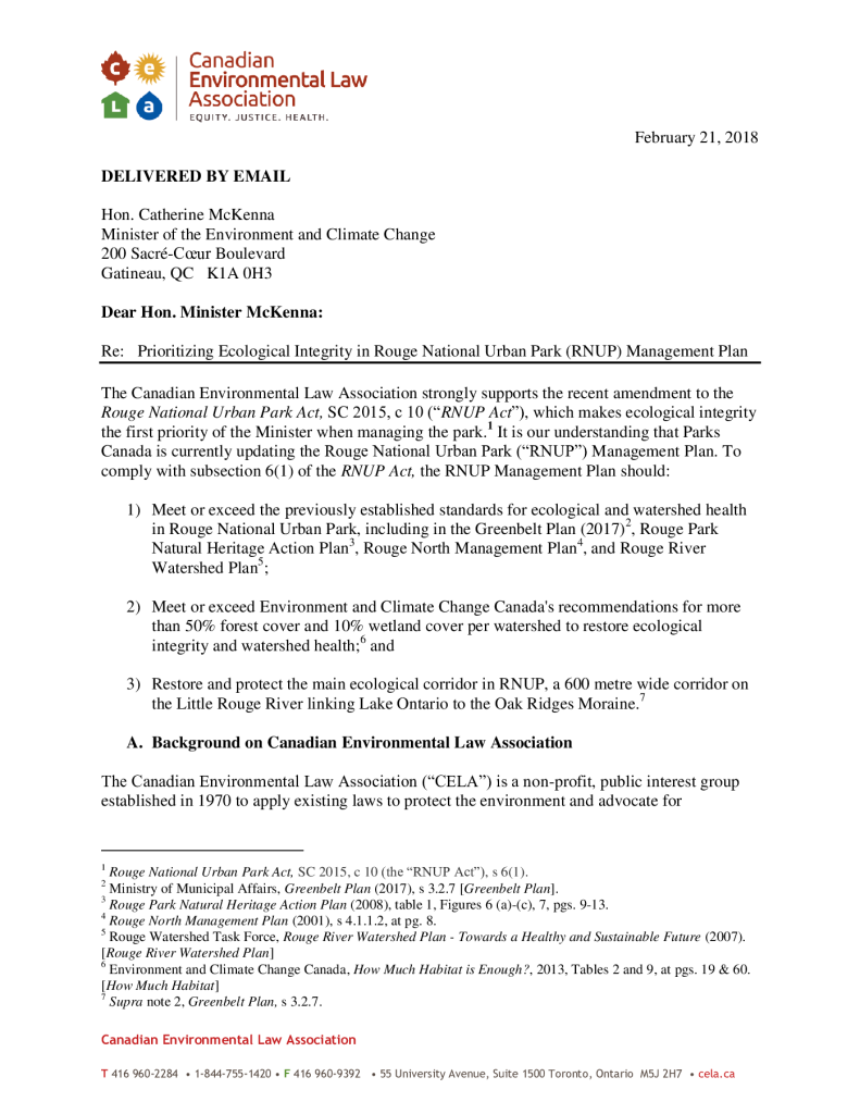 Prioritizing Ecological Integrity in Rouge National Urban Park (RNUP) Management Plan