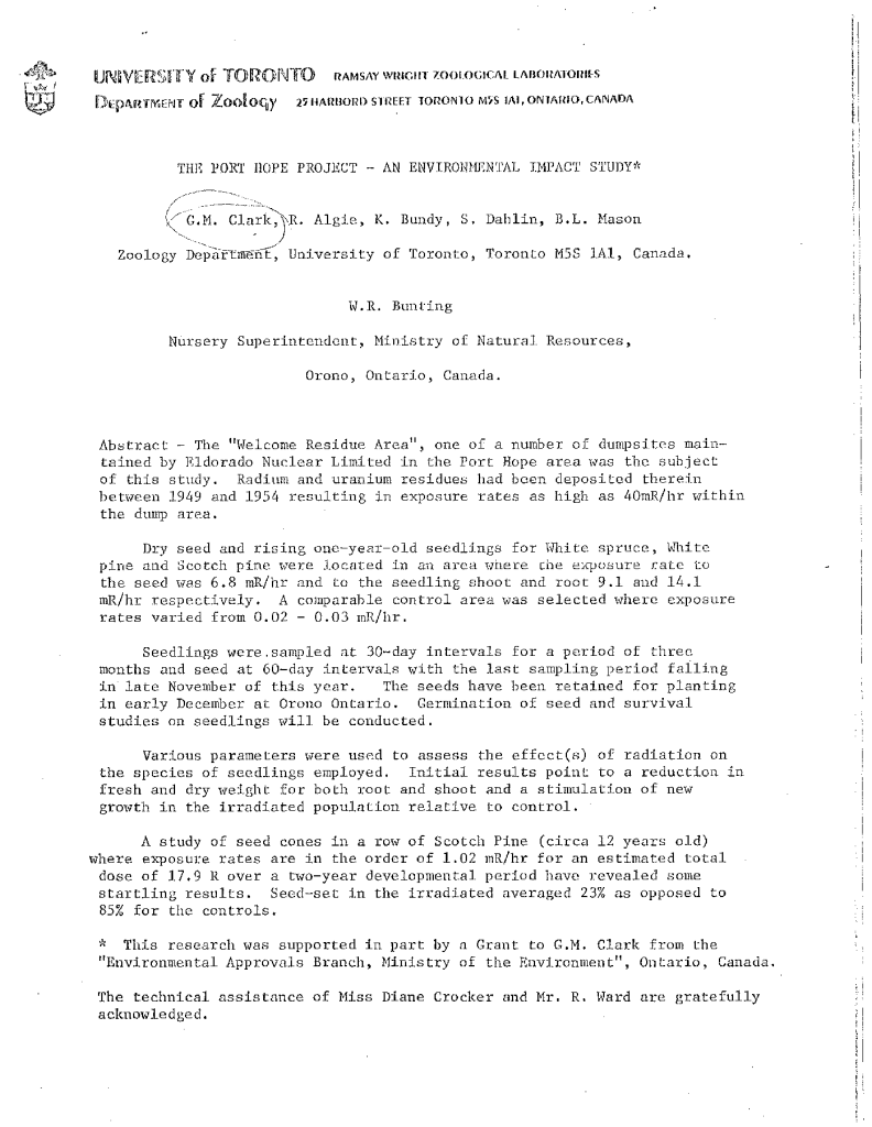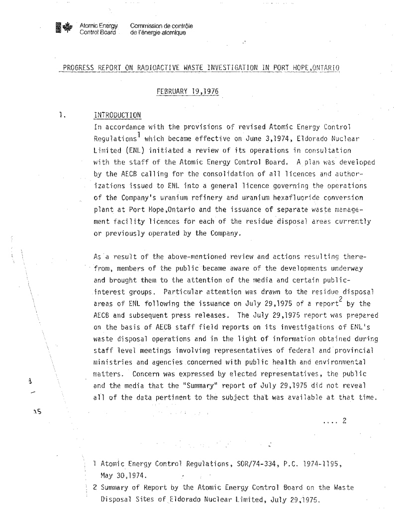 Progress report on radioactive waste investigation in Port Hope, Ontario