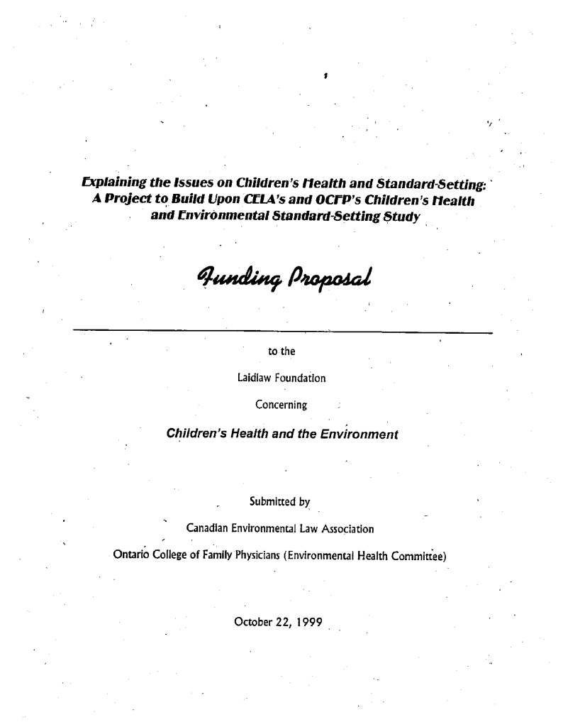 Project proposal for Explaining the issues on children’s health and standard-setting