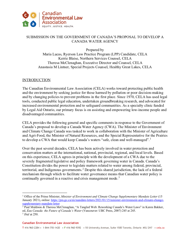 Fonds 1.0 - Canadian Environmental Law Association
