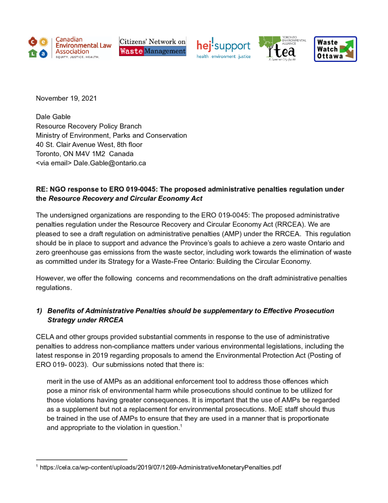 Proposed Administrative Penalties Regulation under the Resource Recovery and Circular Economy Act