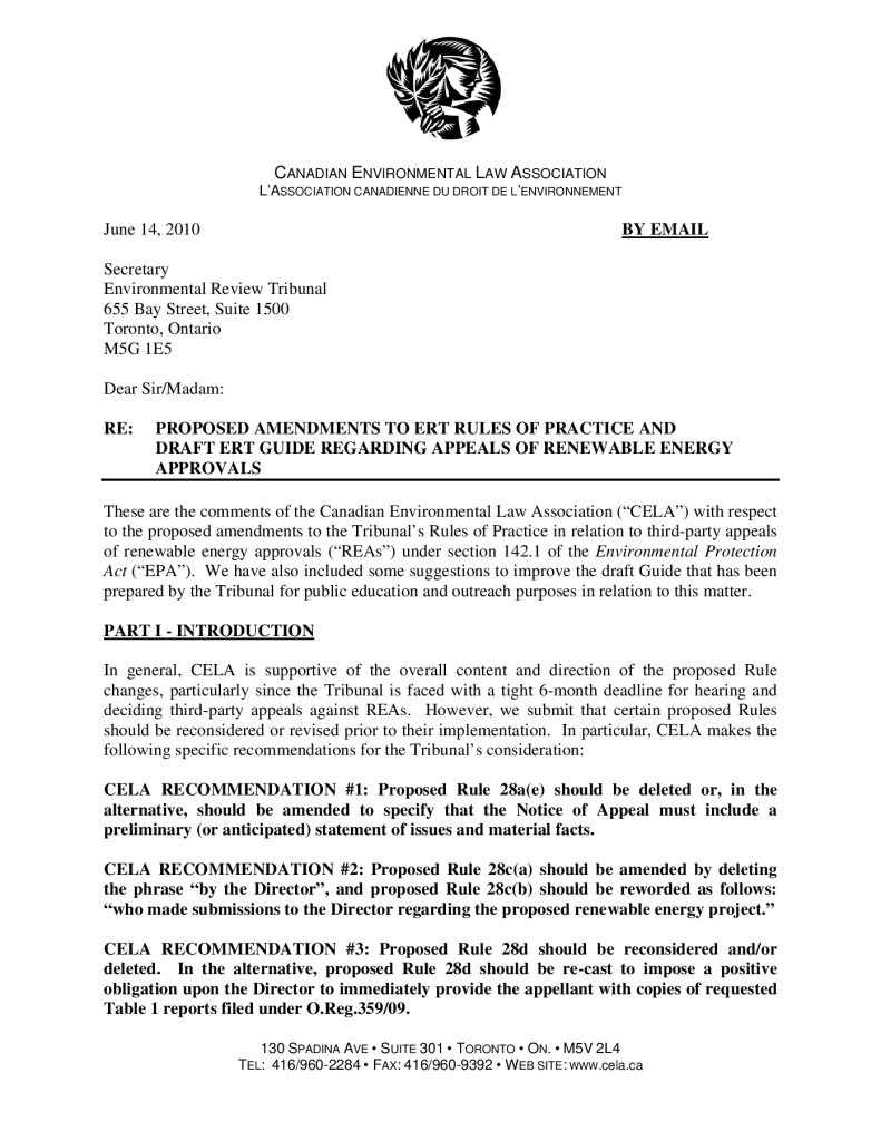 Proposed Amendments to Environmental Review Tribunal (ERT) Rules of Practice and Draft ERT Guide regarding Appeals of Renewable Energy Approvals