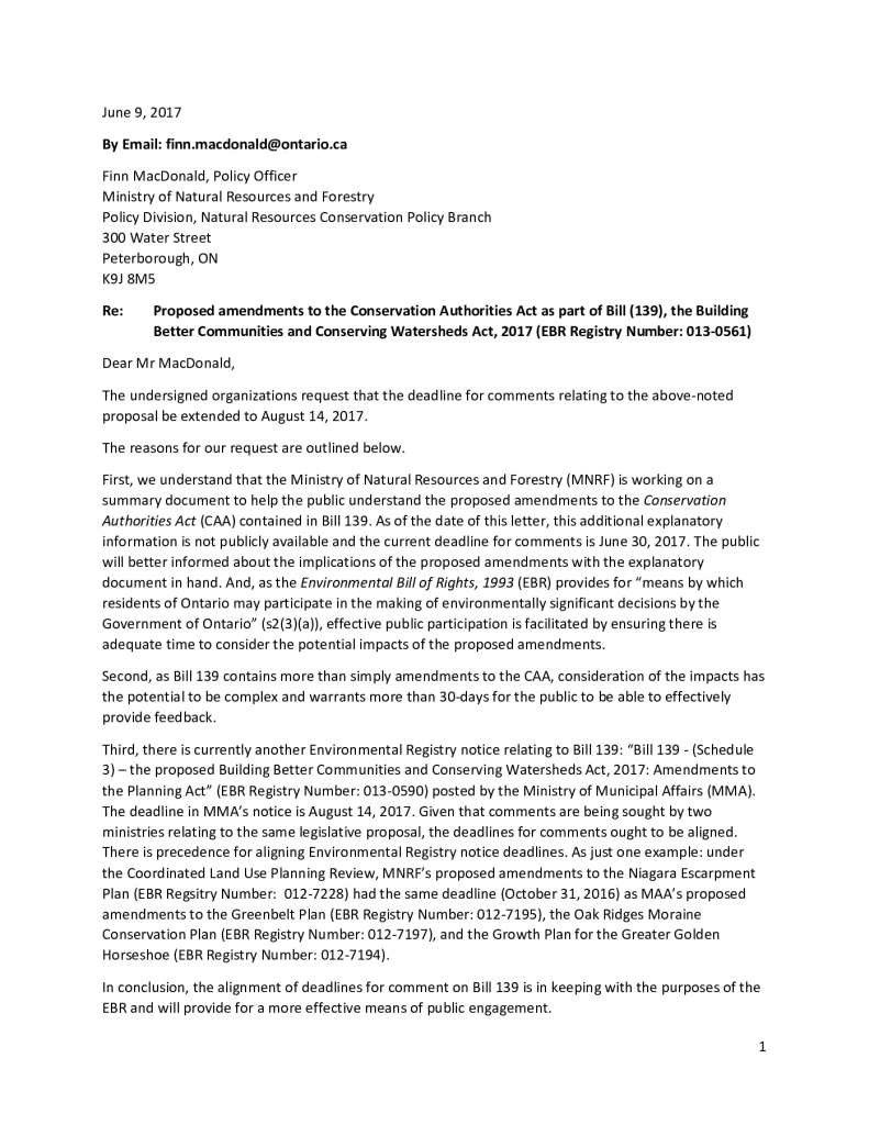 Proposed amendments to the Conservation Authorities Act as part of Bill (139), the Building Better Communities and Conserving Watersheds Act, 2017