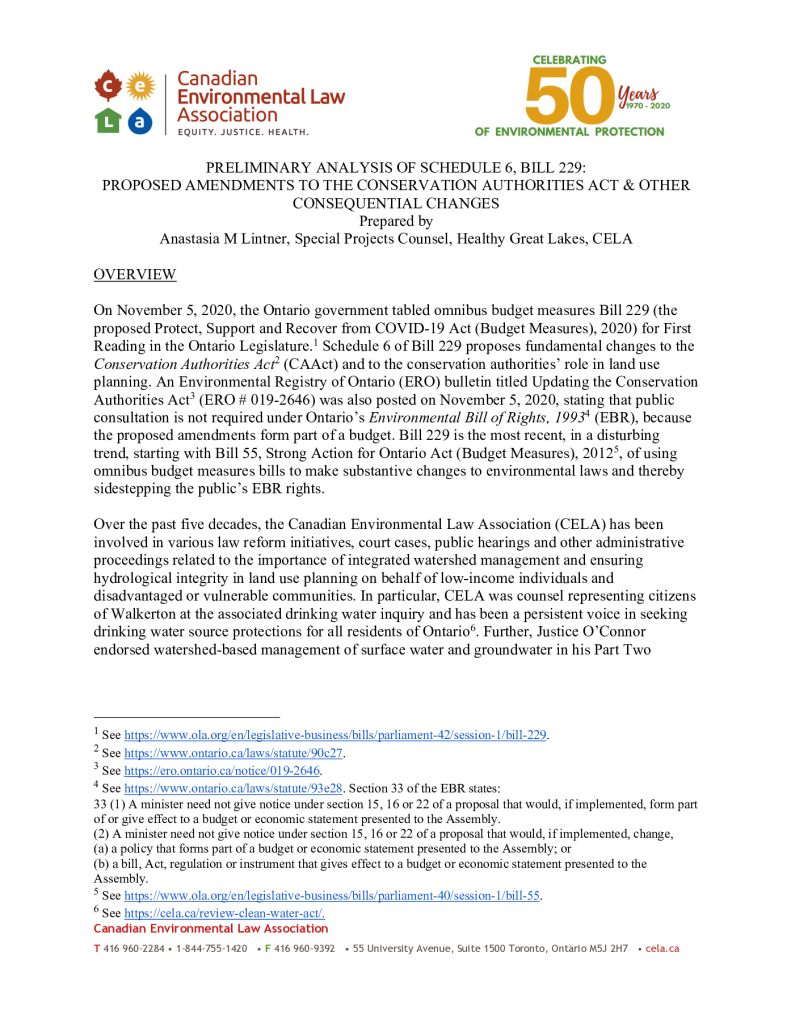 Proposed Amendments to the Conservation Authorities Act – Preliminary Analysis