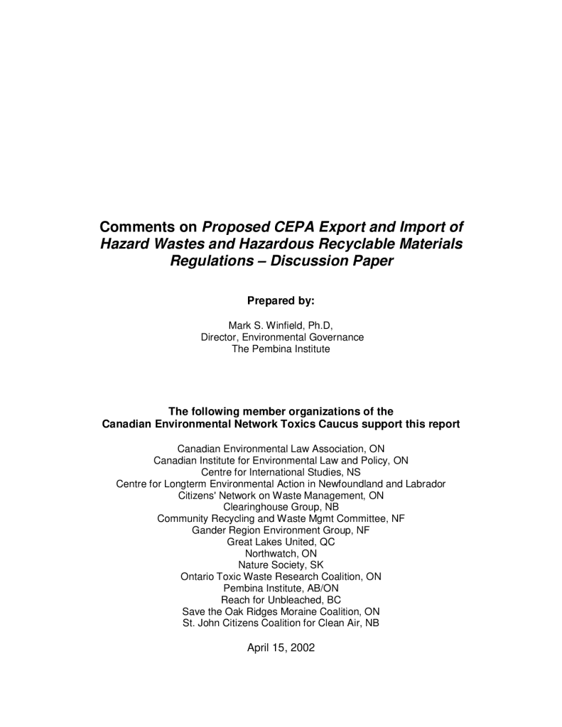 Proposed CEPA Export and Import of Hazard Wastes and Hazardous Recyclable Materials Regulations