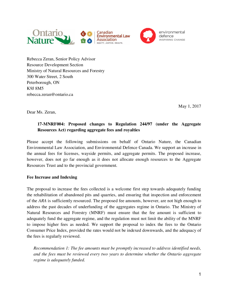 Proposed changes to Regulation 244/97 (under the Aggregate Resources Act) regarding aggregate fees and royalties