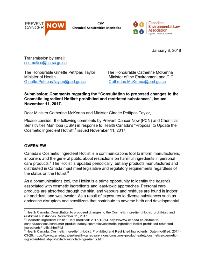 Proposed changes to the Cosmetic Ingredient Hotlist: prohibited and restricted substances