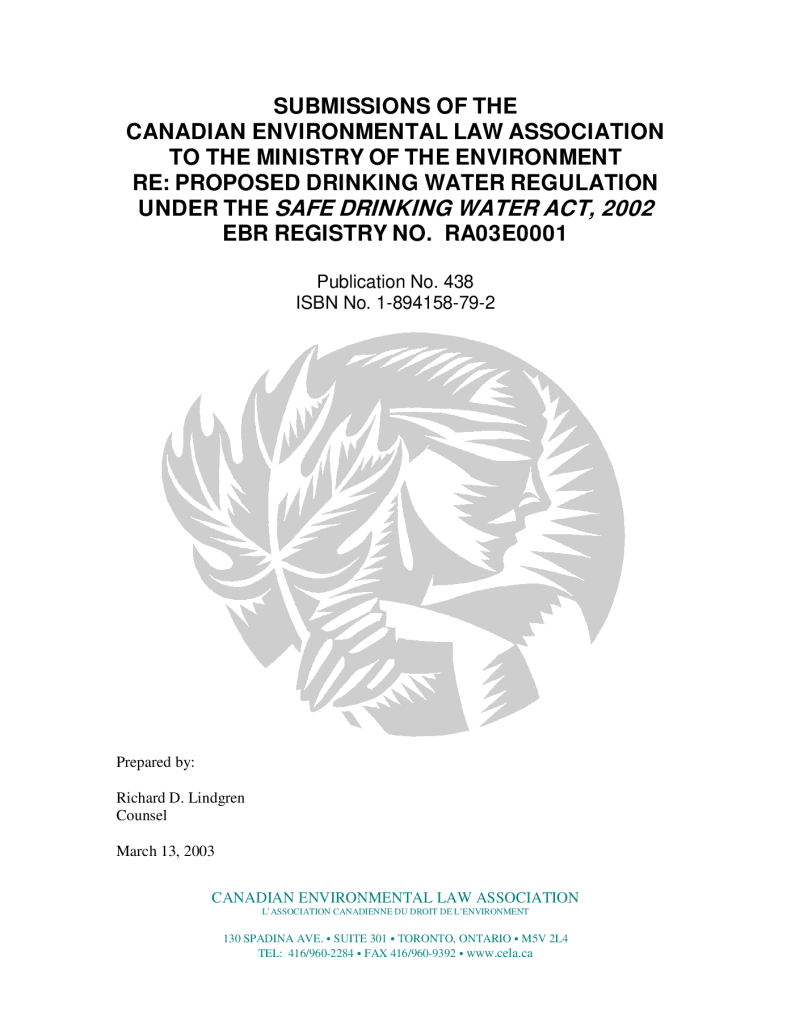 Proposed Drinking Water Regulation under the Safe Drinking Water Act, 2002