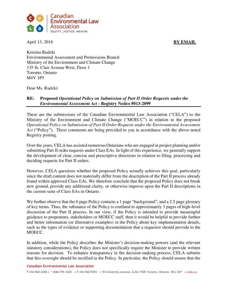 Proposed Operational Policy on Submission of Part II Order Requests under the Environmental Assessment Act