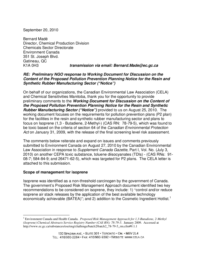Proposed Pollution Prevention Planning Notice for the Resin and Synthetic Rubber Manufacturing Sector