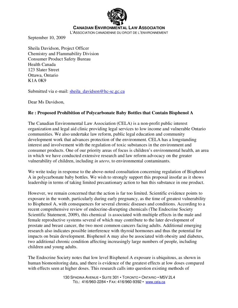 Proposed Prohibition of Polycarbonate Baby Bottles that Contain Bisphenol A