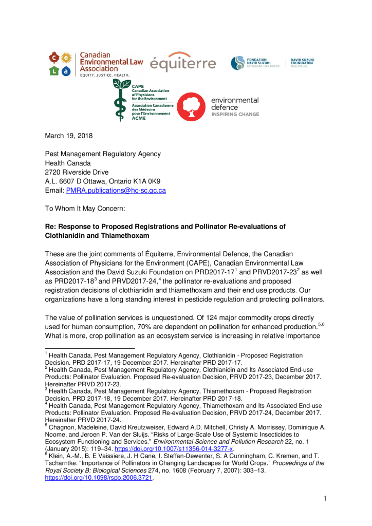 Proposed Registrations and Pollinator Re-evaluations of Clothianidin and Thiamethoxam