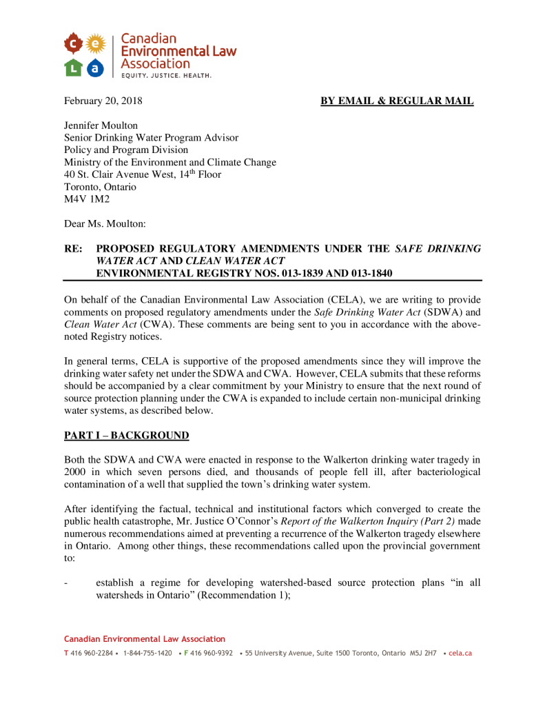 Proposed Regulatory Amendments Under The Safe Drinking Water Act And Clean Water Act