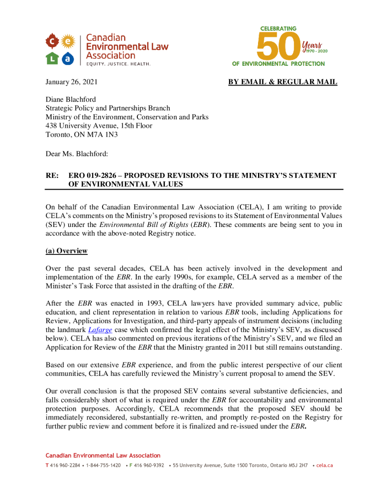 Proposed Revisions to the Ministry’s Statement of Environmental Values
