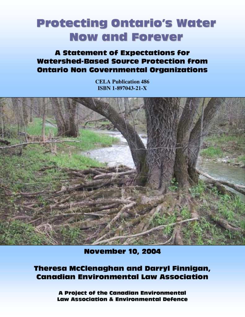 Protecting Ontario’s water now and forever: A statement of expectations for watershed-based source protection from Ontario’s non governmental organizations