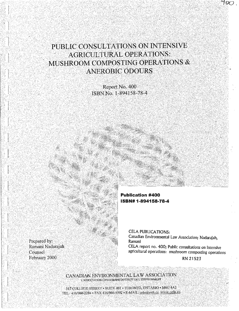 Public consultations on intensive agricultural operations: Mushroom composting operations and anerobic odours