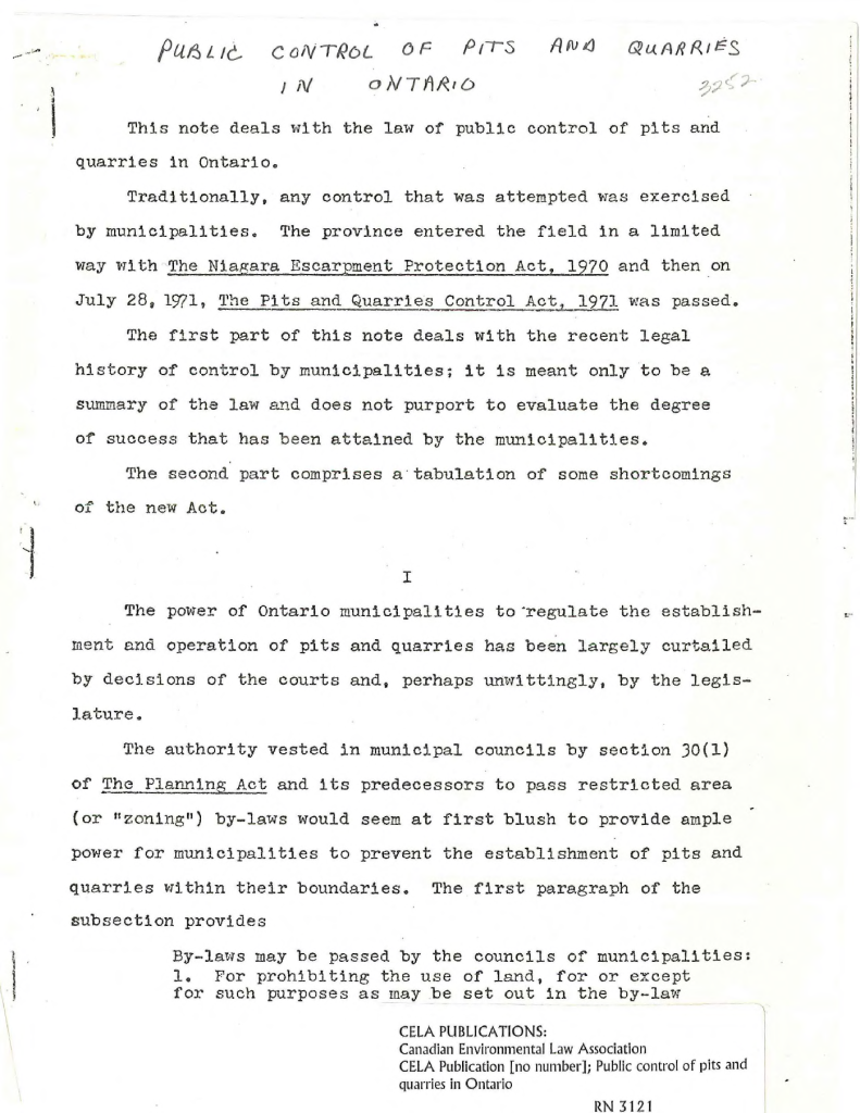 Public control of pits and quarries in Ontario