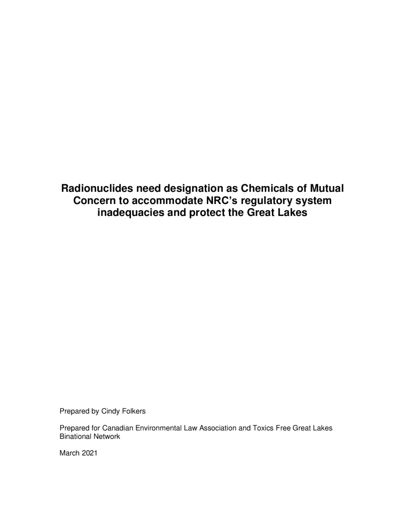Radionuclides Need Designation as Chemicals of Mutual Concern Under the Great Lakes Water Quality Agreement