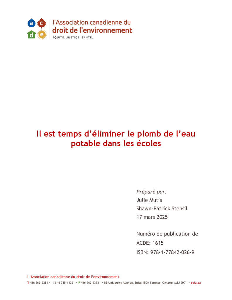 Rapport: Il est temps d’éliminer le plomb de l’eau potable dans les écoles