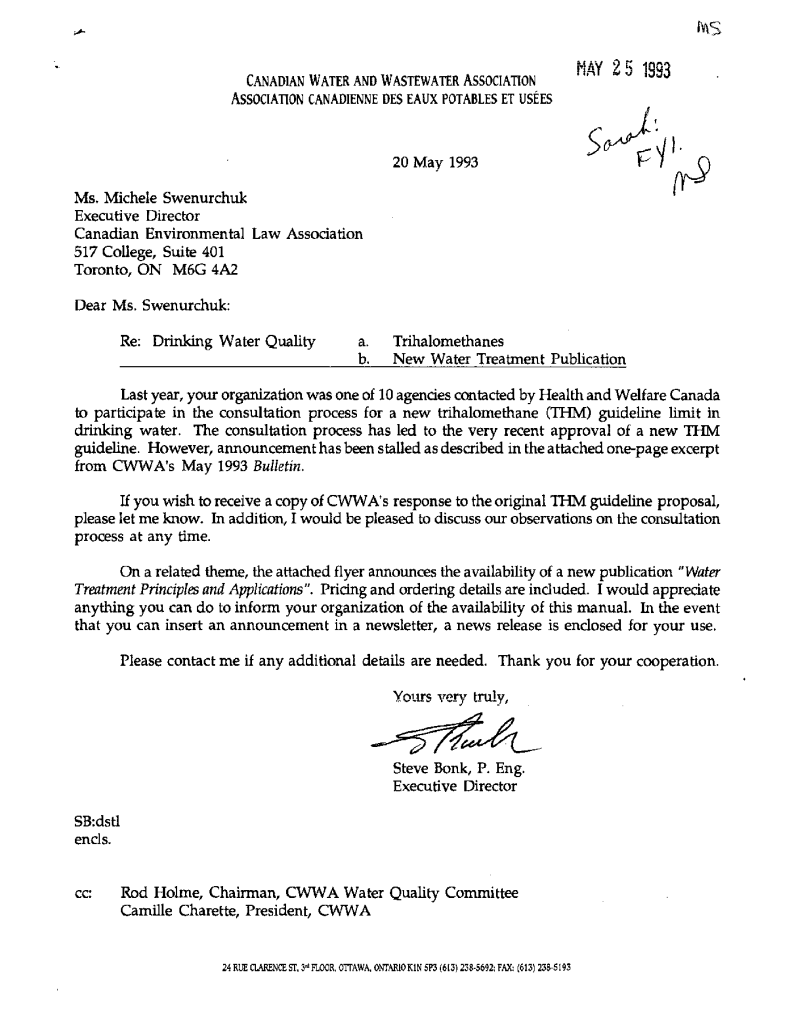 Re: Drinking water quality – Trihalomethans – New water treatment publication