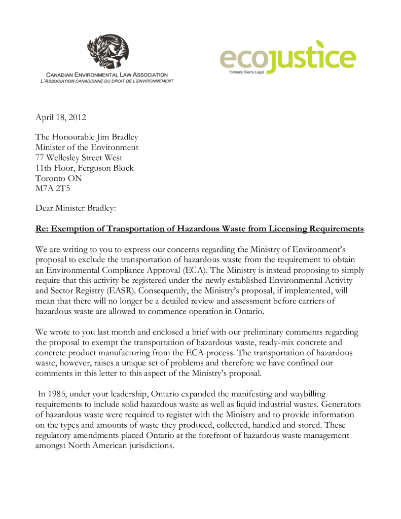 Re: Exemption of Transportation of Hazardous Waste from Licensing Requirements