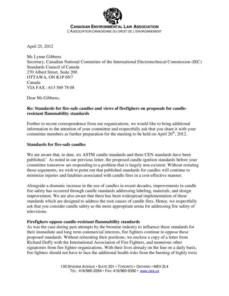 Re: Standards for fire-safe candles and views of firefighers on proposals for candle-resistant flammability standards