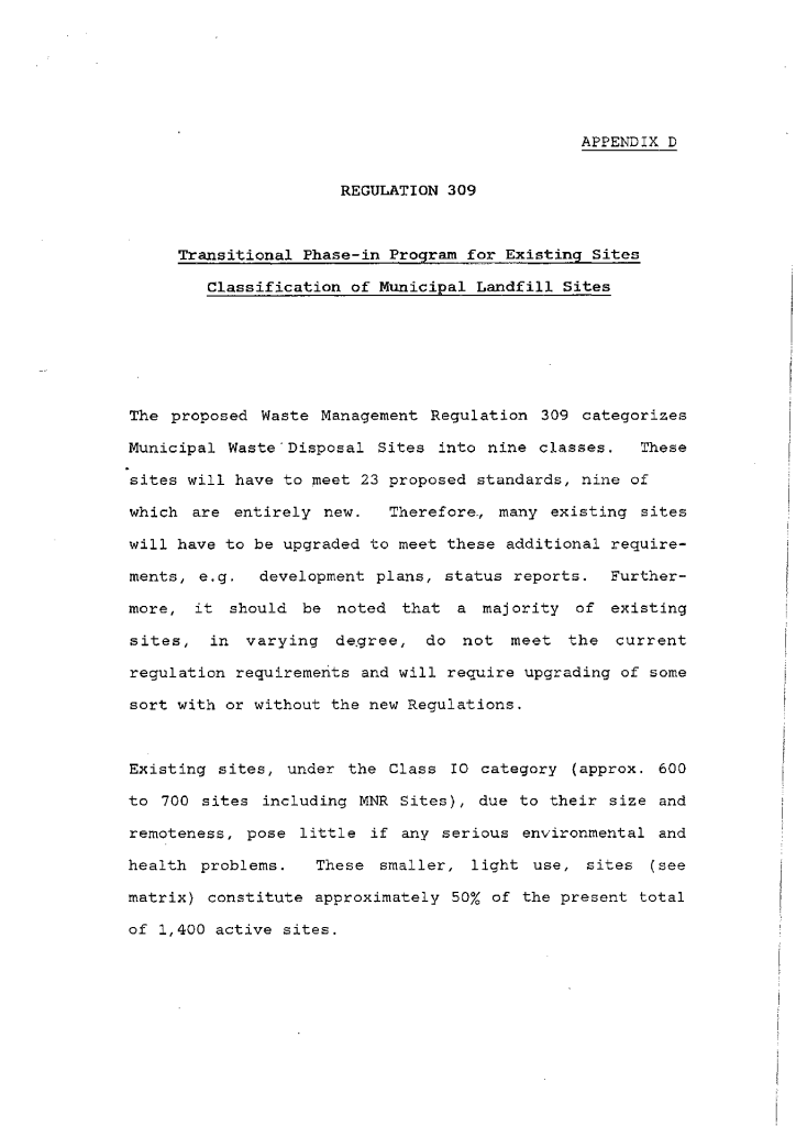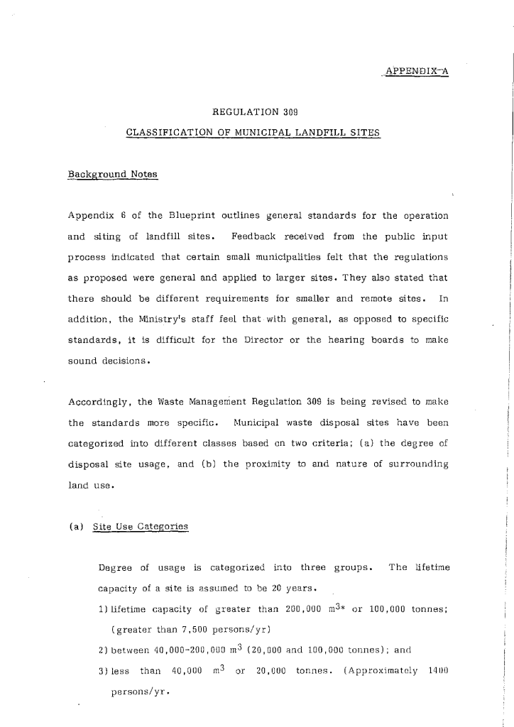 Regulation 309 classification of municipal landfill sites