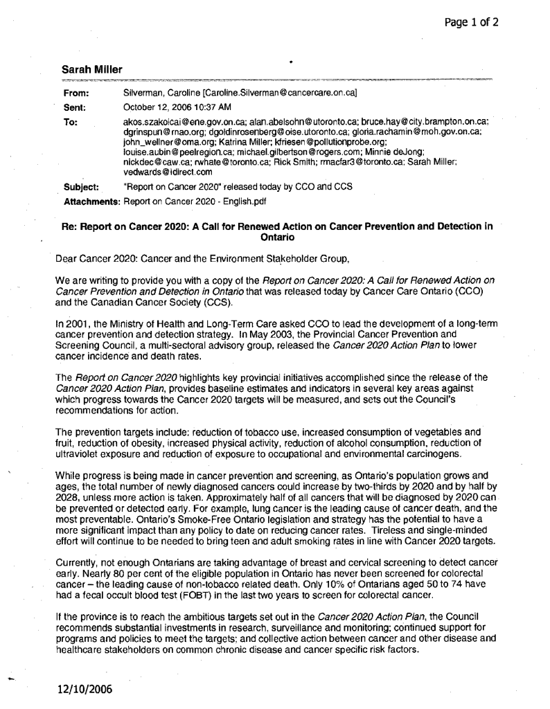 File 1.0 - The Canadian Environmental Law Association Federal cancer prevention work