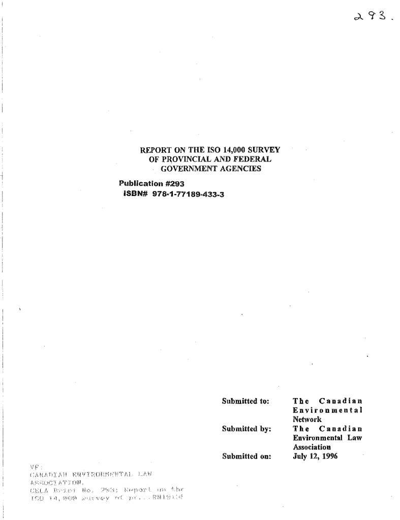 Report on the ISO 14,000 survey of provincial and federal government agencies
