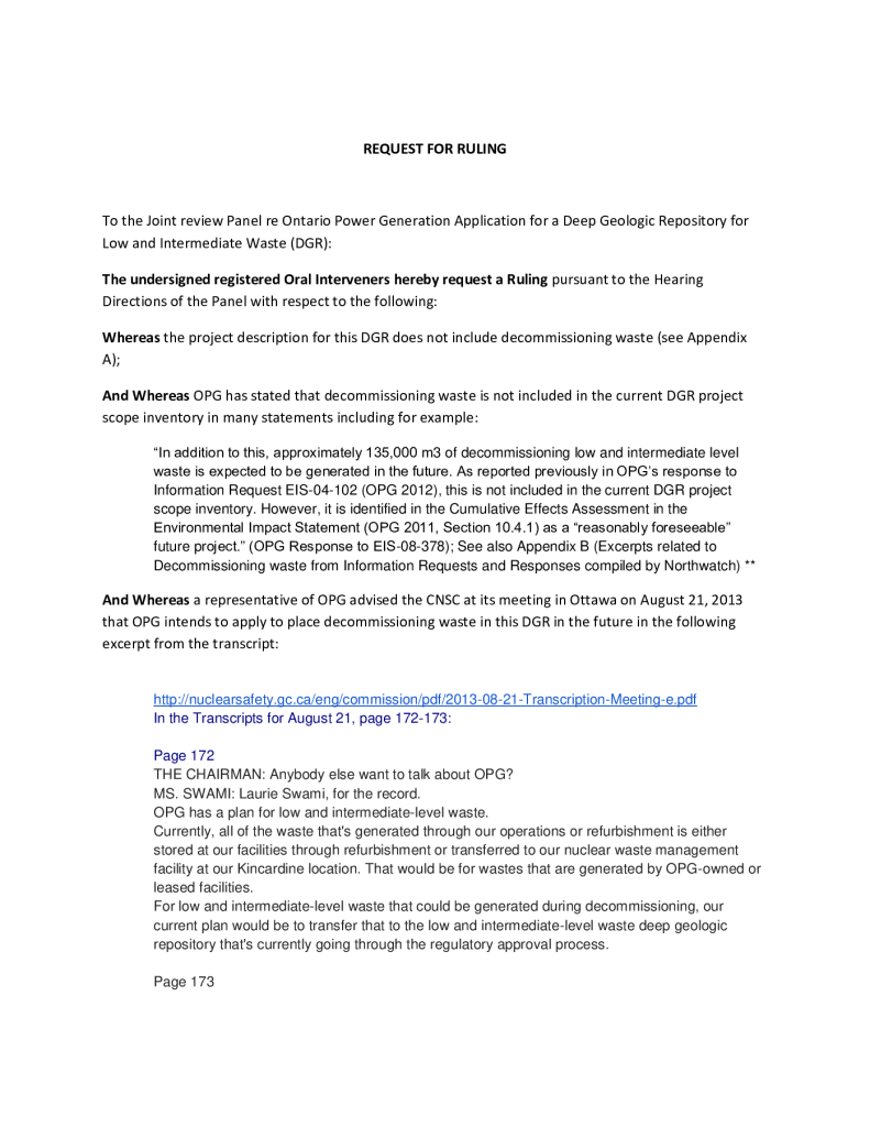 Request for Ruling Regarding Inclusion of Decommissiong Waste (DGR)