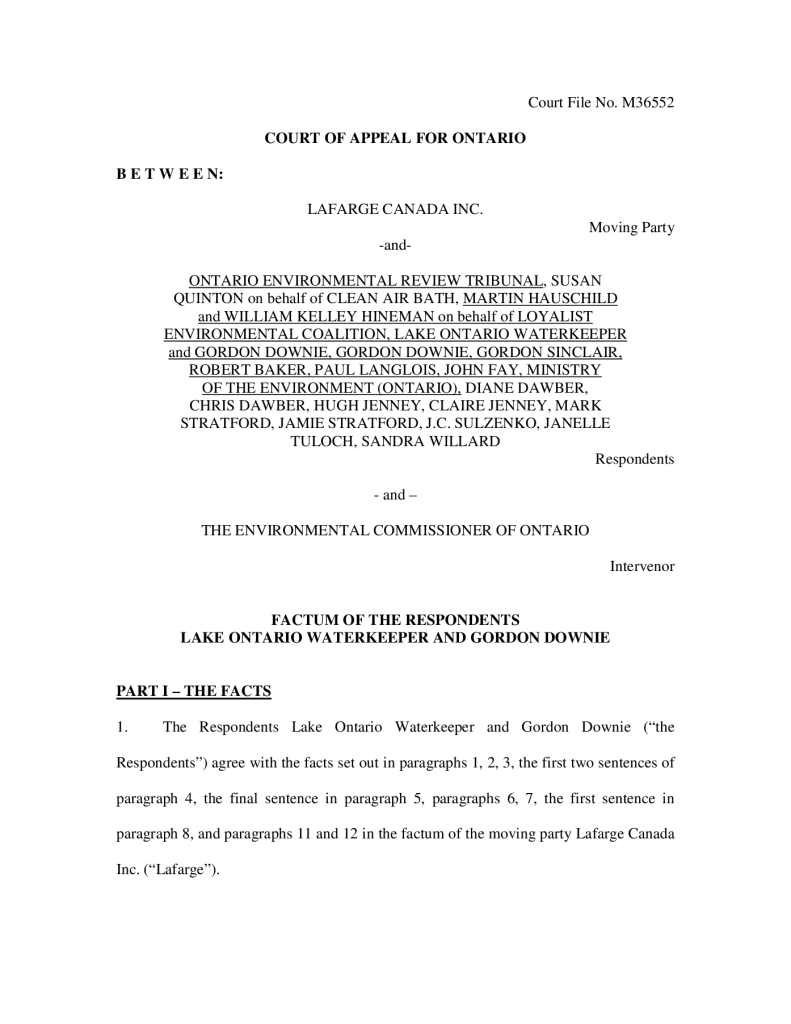Respondents Factum to Ontario Court of Appeal (Lafarge)