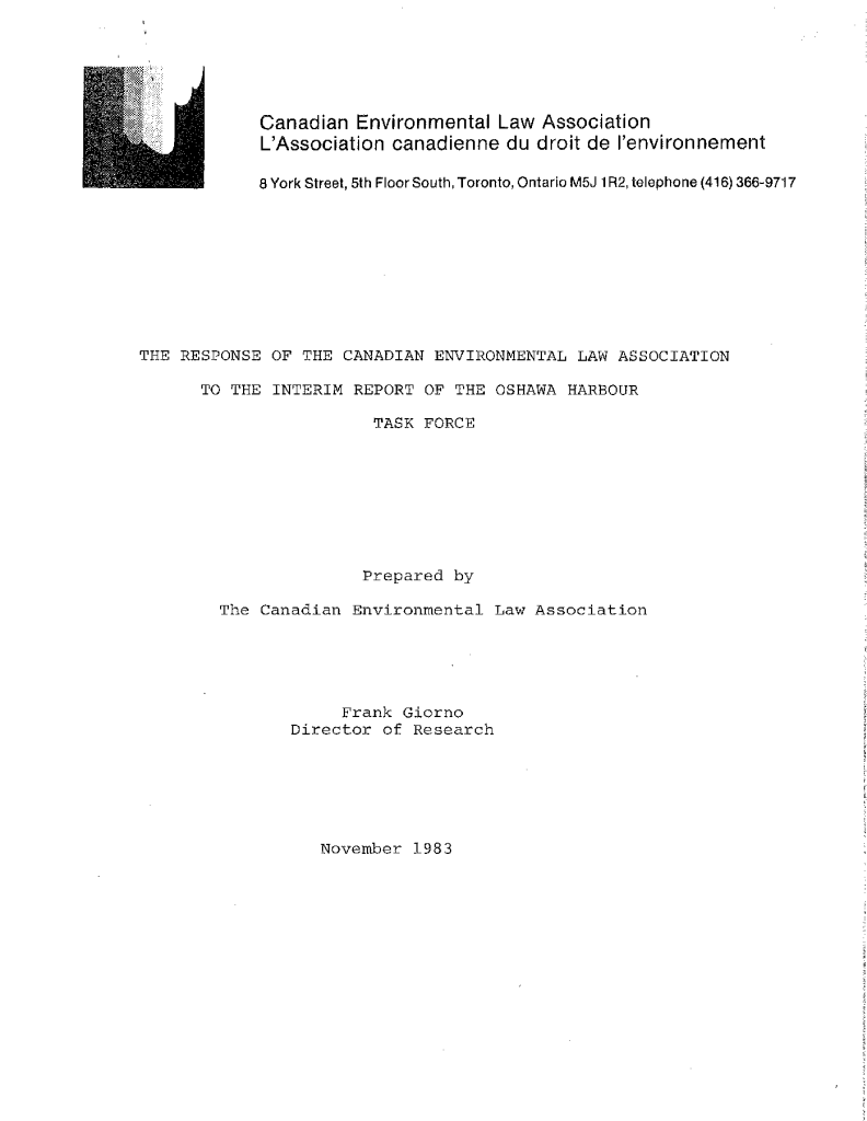 Response of CELA to the interim report of the Oshawa Harbour Task Force