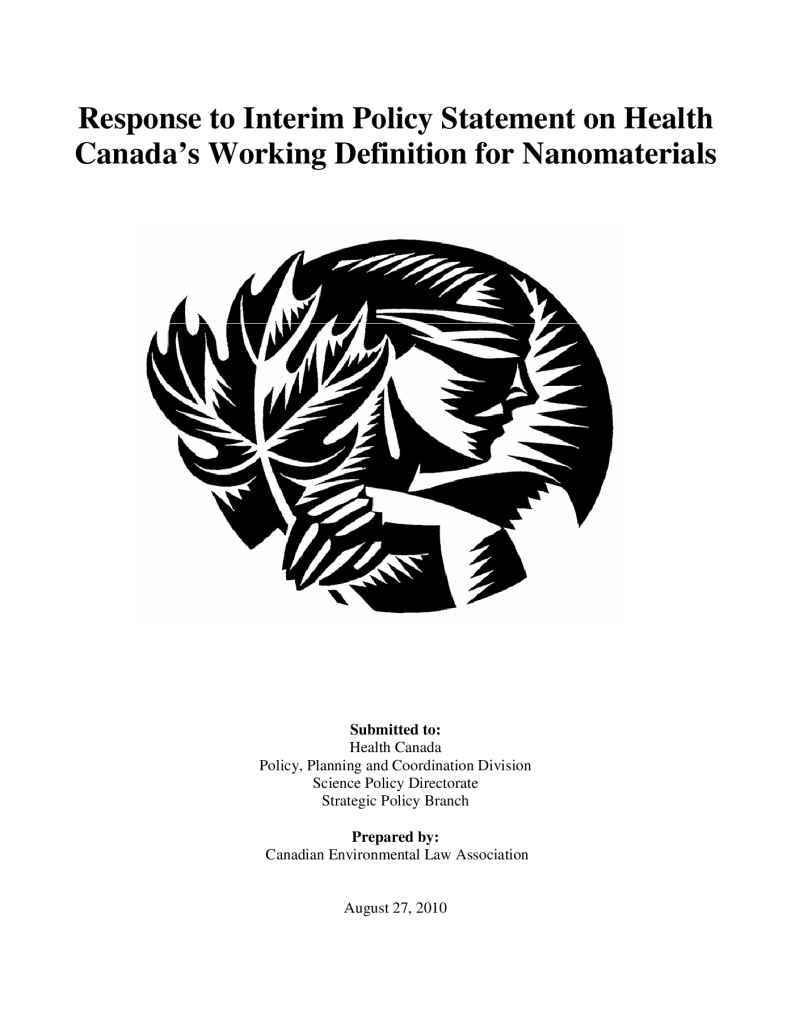 Response to interim policy statement on Health Canada’s working definition for Nanomaterials