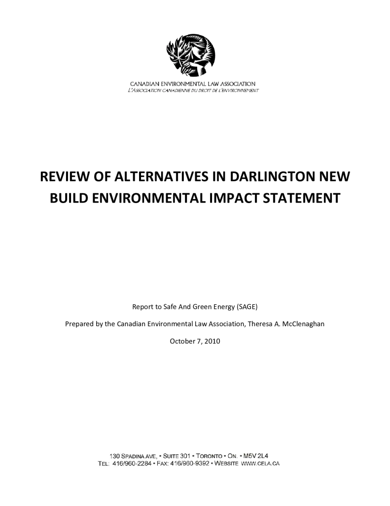 Review of alternatives in Darlington New Build Environmental Impact Statement