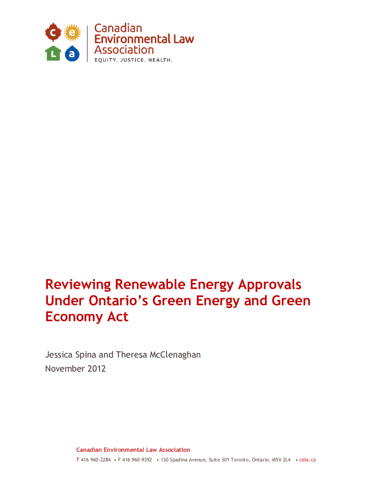Reviewing Renewable Energy Approvals Under Ontario’s Green Energy and Green Economy Act