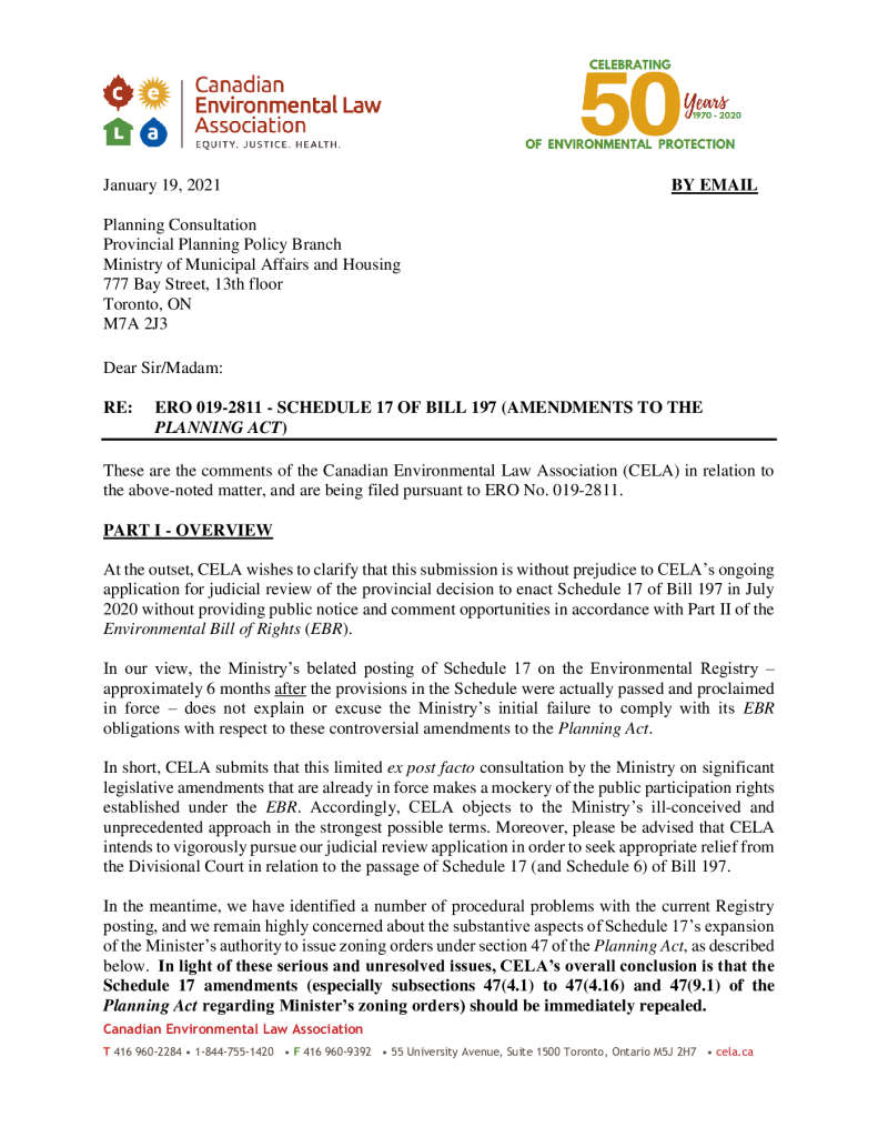 Schedule 17 of Bill 197 (Amendments to the Planning Act)