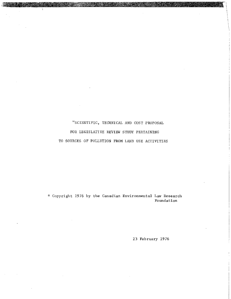 Scientific, technical and cost proposal for legislative review study pertaining to sources of pollution from land us activities