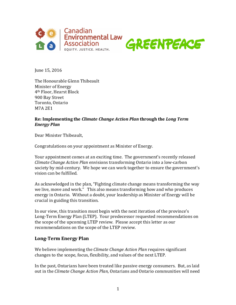 Scope of 2016 Long-Term Energy Plan CELA and Greenpeace Submission