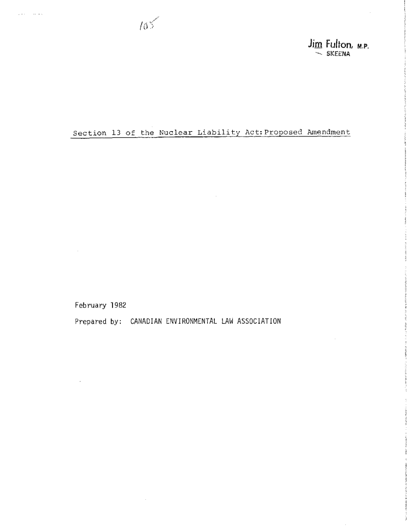 Section 13 of the Nuclear Liability Act: proposed amendment